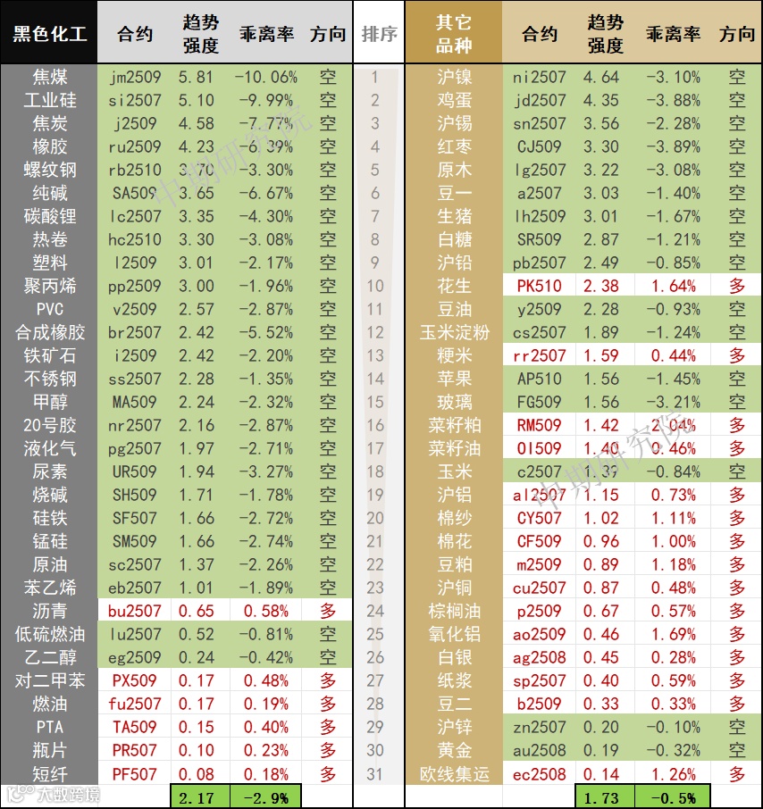 中期商品趋势榜 | 焦煤、工业硅、沪镍、焦炭、鸡蛋、橡胶空头强势 (0528)