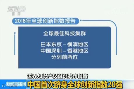 近日,世界知识产权组织和美国康奈尔大学等机构发布《2018全球创新指数报告》(简称《报告》),中国排名第17位,首次跻身最具创新力经济体20强,是唯一一个进入20强的中等收入经济体。