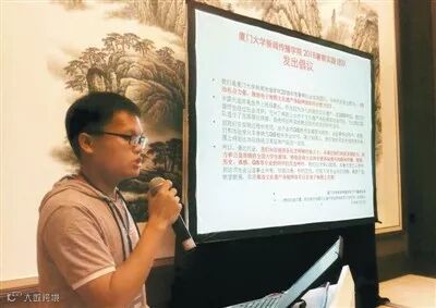 厦门大学新闻传播学院的暑期实践团队代表,在论坛现场“向在座的专家老师和全国的大学生群体发出倡议”,推动新闻传播、地理、文博考古、规划设计、遥感、测绘等专业的融合合作,早日让多年实践积累的文化遗产价值体验线路,出现在人们日常使用的电子地图上。记者 齐欣 摄