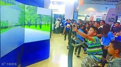数博会现场,观众在体验沉浸式VR自行车。光明日报记者 李慧摄/光明图片