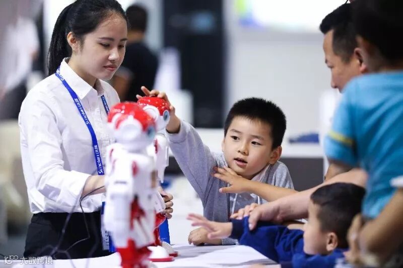 5月26日,孩子们在博览会现场参观仿真机器人。当日,2018中国国际大数据产业博览会在贵州省贵阳市开幕。 新华社记者 刘续 摄