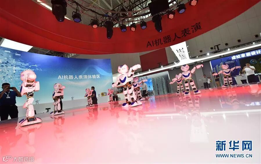 这是5月16日在第二届世界智能大会科技展上拍摄的机器人表演。新华社记者 李然 摄