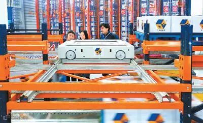 近年来,中国的互联网技术、物联网产品和自动化装备在各行各业迅速普及。图为在中国国际物流科技博览会上,中国科技吸引观众驻足观看。王路宪摄 人民图片发