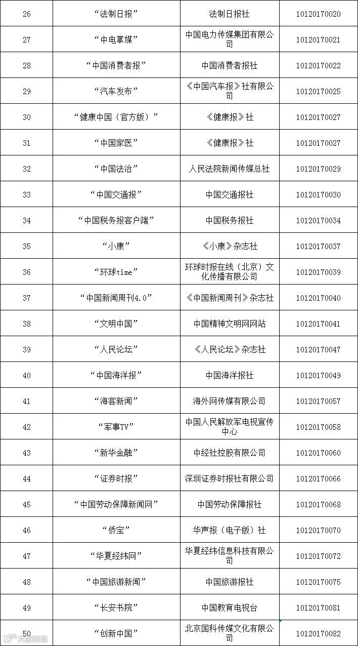 二、获得互联网新闻信息服务许可的应用程序名单(共50个)