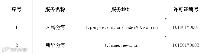 五、获得互联网新闻信息服务许可的微博客名单(共2个)