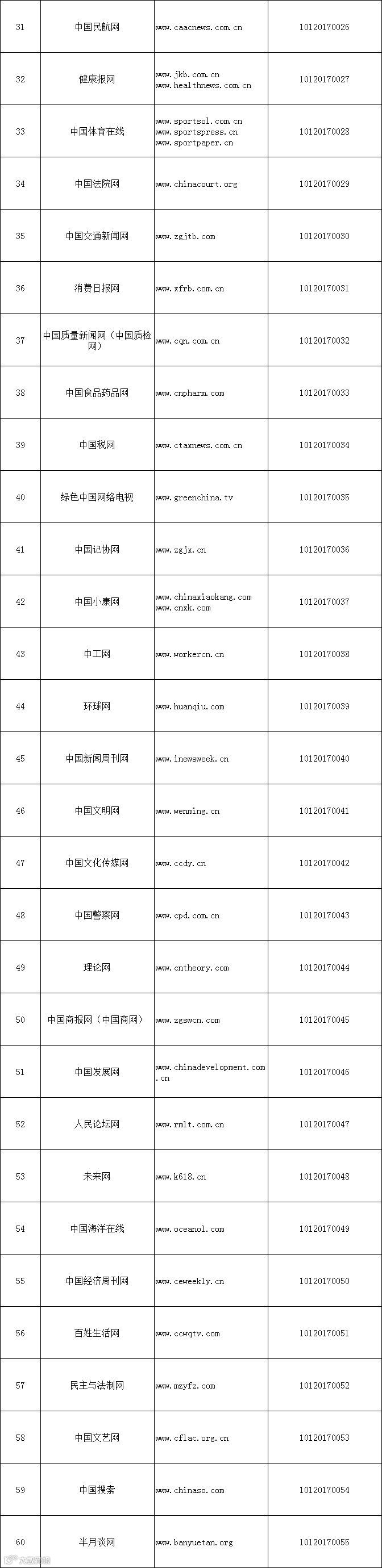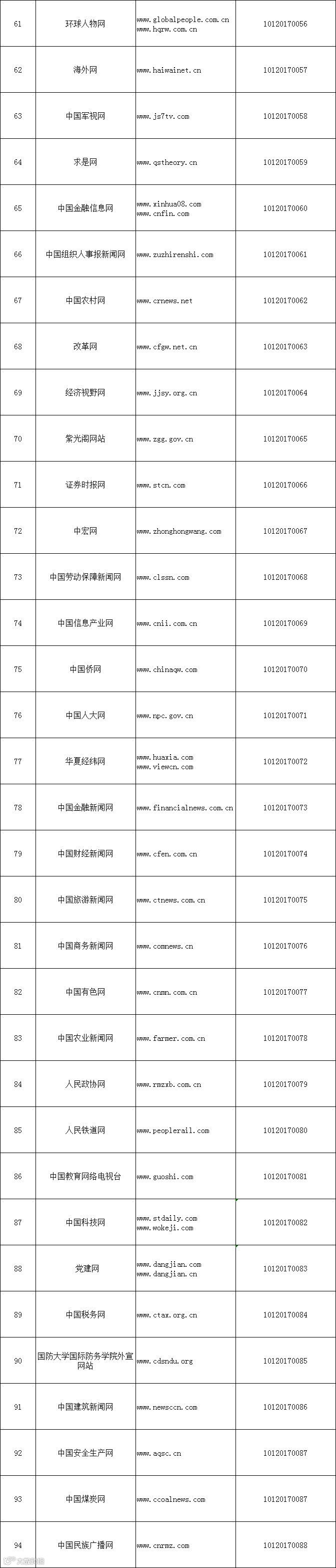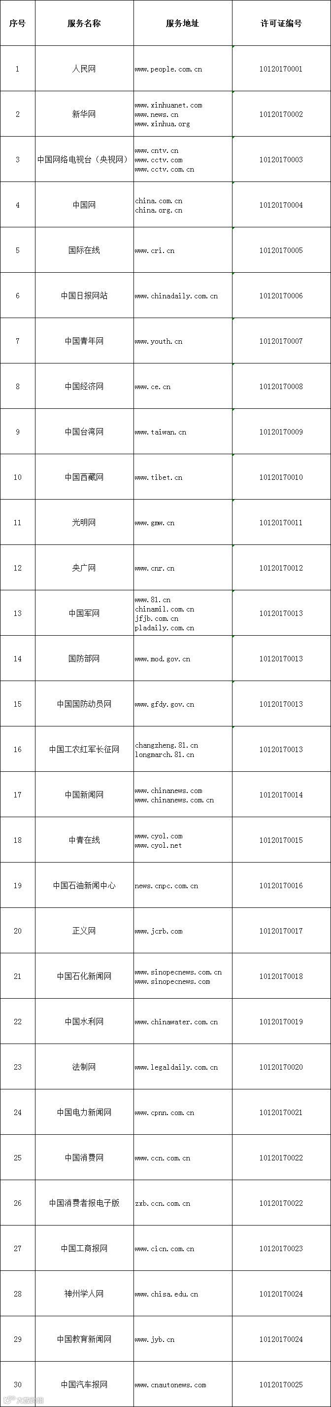 一、获得互联网新闻信息服务许可的互联网站名单(共94个)