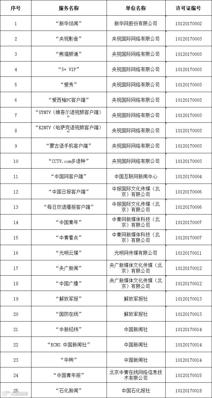 八、获得互联网新闻信息服务许可的网络直播名单(共3个)