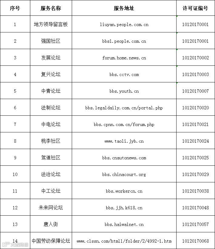 三、获得互联网新闻信息服务许可的论坛名单(共14个)