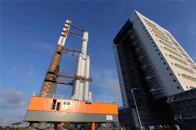 长征七号遥二运载火箭与天舟一号货运飞船组合体在垂直转运中。(新华社发)