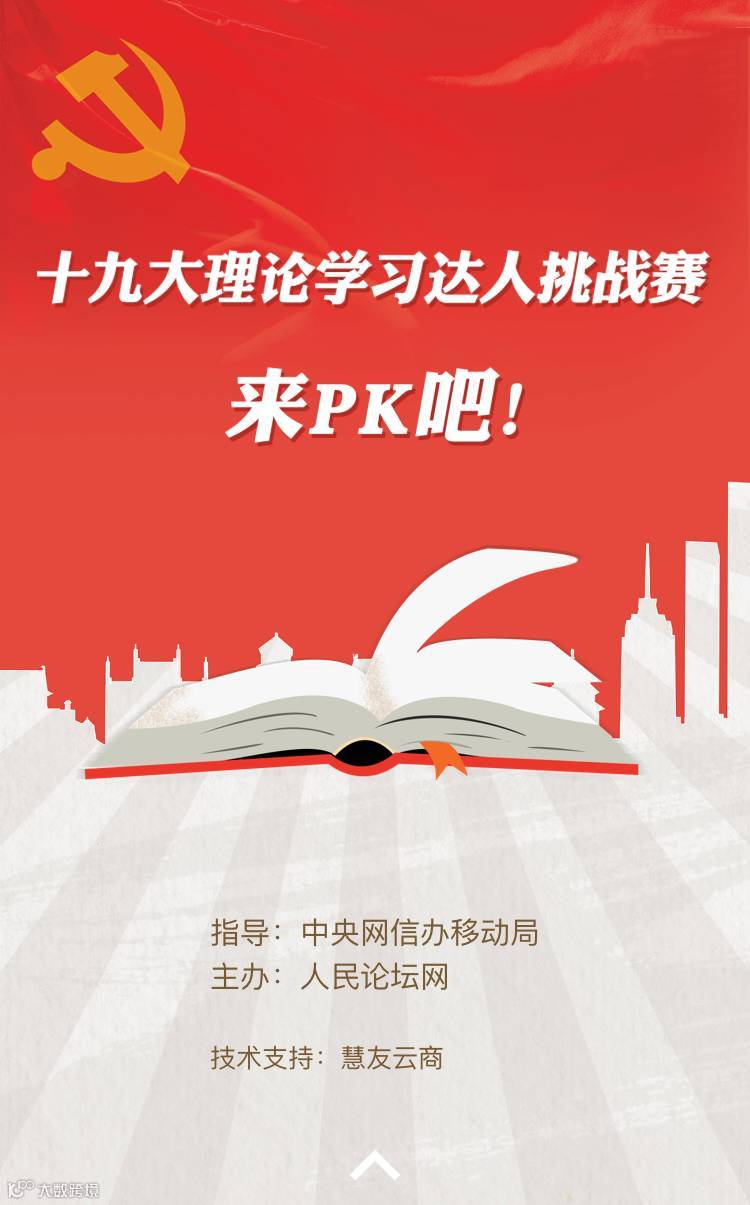 在中央网信办移动局的指导下,人民论坛网特推出十九大理论学习达人挑战赛。此次挑战赛由来自中央党校、国家行政学院、清华大学等知名高校6位权威专家围绕十九大报告出题,题库共有200道题,一网“答”尽理论知识点。