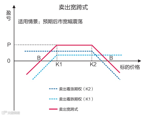 卖出跨式期权的收入是收取的卖出的两个期权的权利金之和。不考虑交易成本的情况下,期权到期时标的市场价格介于卖出宽跨式期权的行权价格之间时,宽跨式期权卖方获得最大盈利。