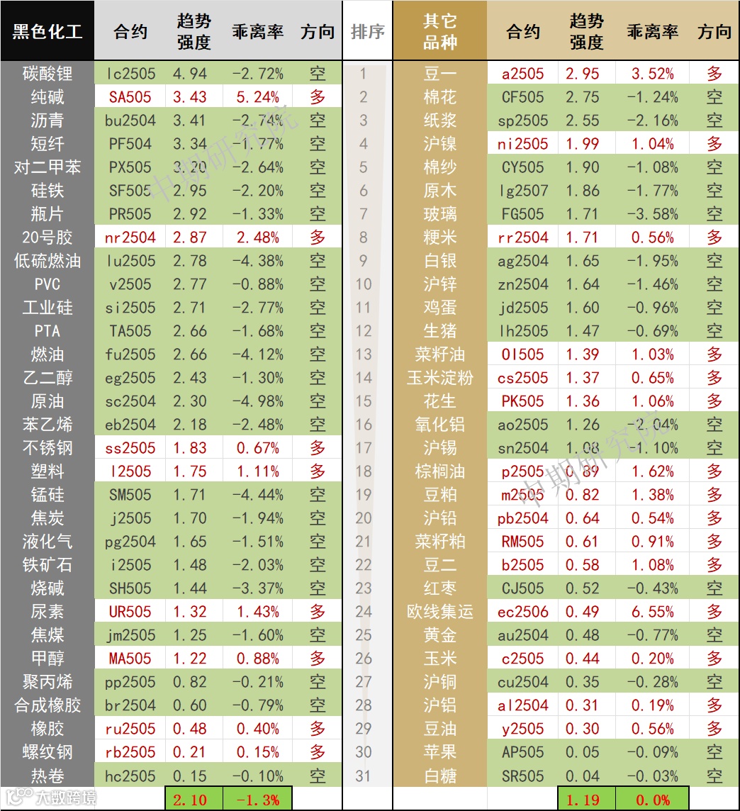 中期商品趋势榜 | 碳酸锂、沥青、短纤、对二甲苯空头强势 纯碱多头偏强(0228)