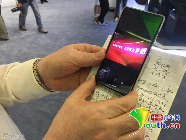 参观者展示自己的记录本和手机照片。中国青年网记者陈琛 摄
