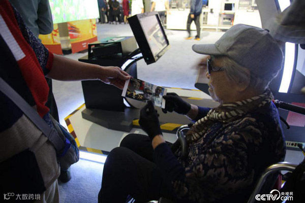 展览中的多种互动体验式展区吸引众多参观者参观,其中在7号馆东北侧的网上展馆线下互动体验区更是因为体验形式多、手法有新意吸引了众多观众排队。众多年轻人的队伍中有两位老人引人注目。据了解,两位老人均已到鲐背之年,但对于新鲜事物仍然保持好奇心。他们耐心地在投票合影区排队等待,在电子屏上为自己喜爱的展馆投票后,拍摄了合影。