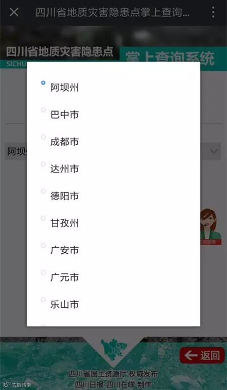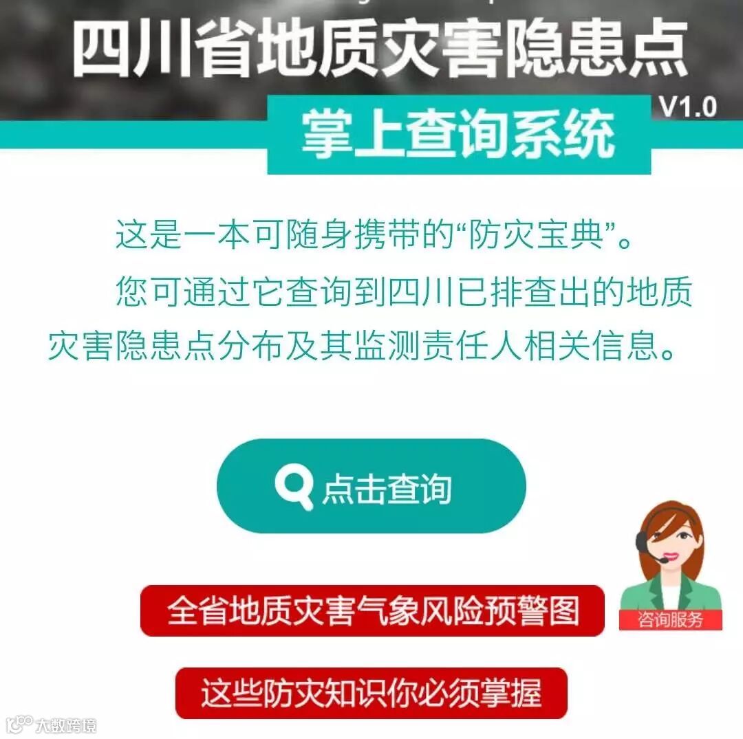 由四川省国土资源厅与四川日报、四川在线联合制作的四川省地质灾害隐患点掌上查询系统,于8月15日正式上线运行。