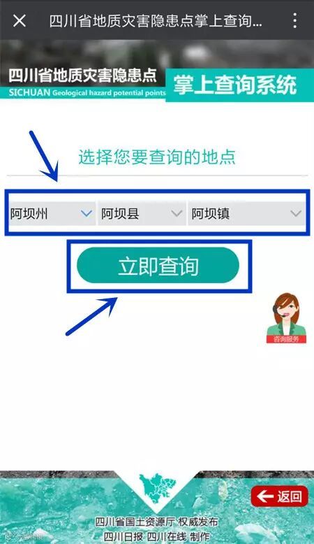 除了及时设立隐患点警示标志,通过广播、电视、网络、短信、村社干部逐户通知等方式外,基于手机端的查询系统让相关工作人员和群众的查询更加方便快捷。
