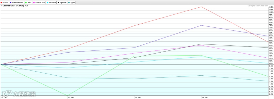 昨日数据扭转来自CES电子展的乐观情绪,英伟达股价创新高后大跌6%,其他热们科企股均大跌,加密货币,美债,及黄金均出现回吐。