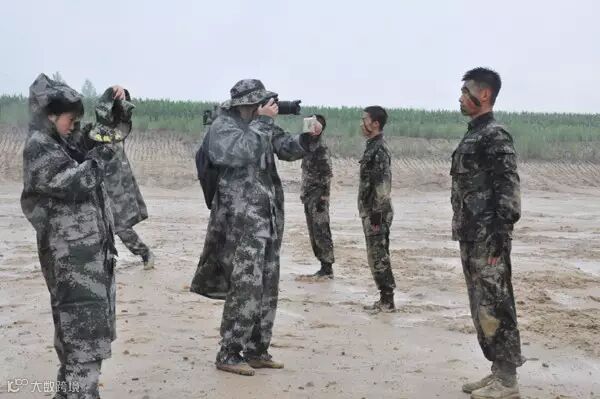 采编人员冒着风雨近距离拍摄战士训练场景。中国网信网 纪静 摄
