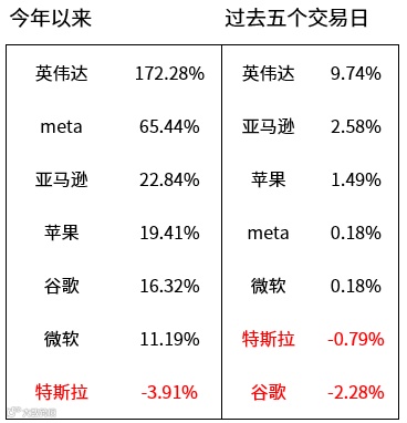 纳指七强表现