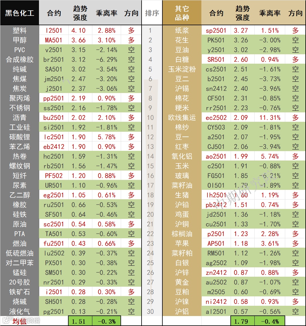 中期商品趋势榜 | 花生、PVC、合成橡胶空头持续  塑料、甲醇、纸浆多头偏强(1120) 中国国际期货福建分公司