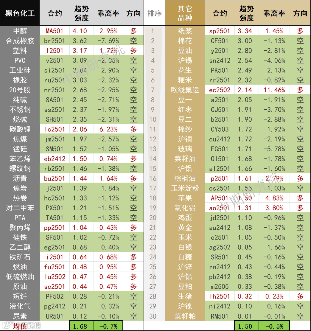 中期商品趋势榜 | 合成橡胶、PVC、棉花空头偏强 甲醇、纸浆多头持续(1119)