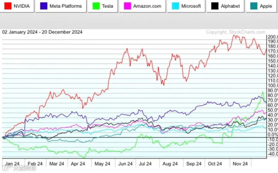纳指七强过去一周及一年表现
