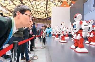 3月9日,在上海举办的2017年中国家电及消费电子博览会上,观众正观赏机器人现场对战,体验AR/VR游戏,感受未来智能生活。本报记者 屠知力摄