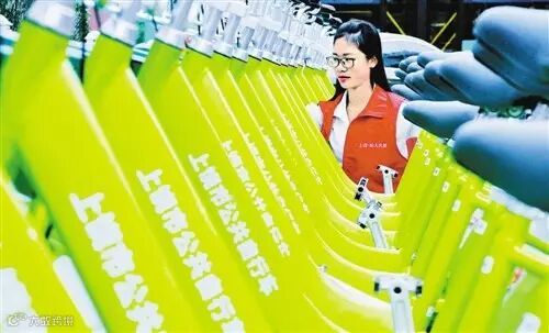 江西上饶市广场存车点市民正在选共享单车。 卓忠伟摄
