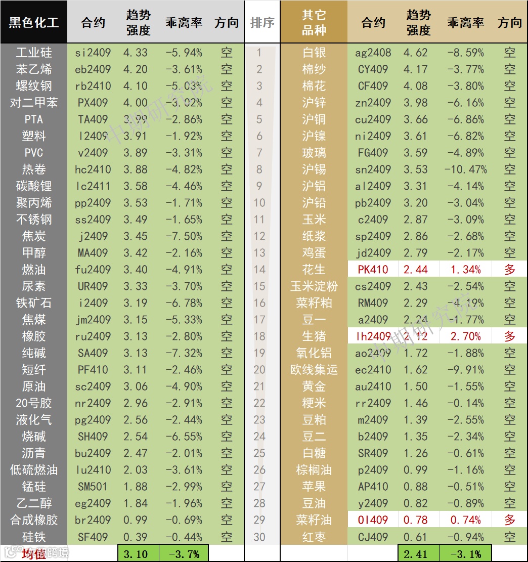 中期商品趋势榜 | 商品空头强势(0725)