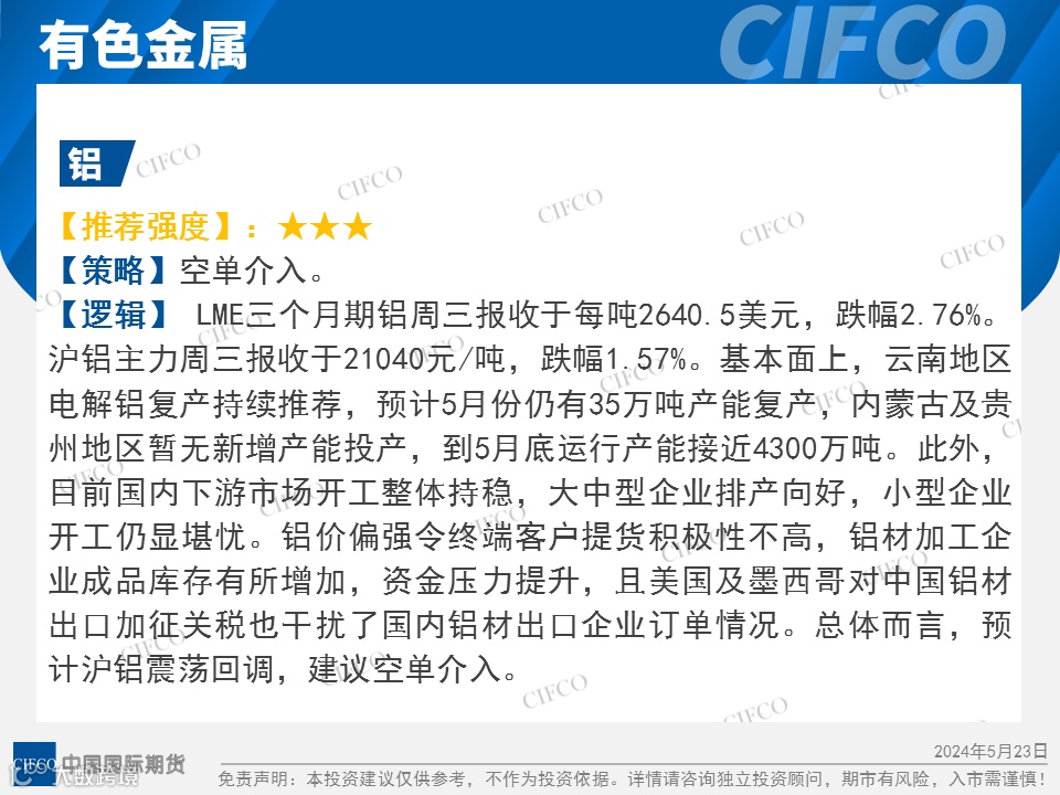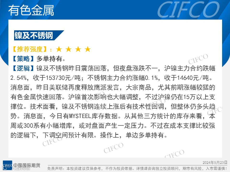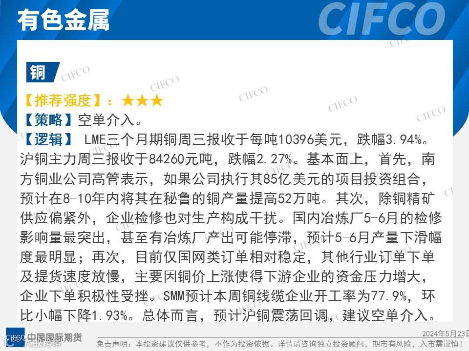 中期早知道 | 基本金属整体下跌  粕类小幅上涨 中国国际期货福建分公司