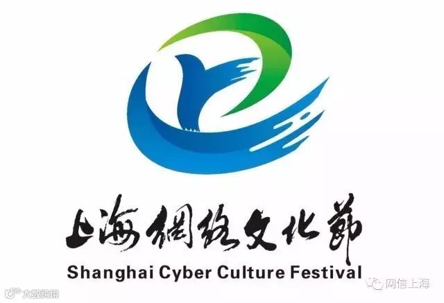 网络文化节Logo以绿、蓝为主色,寓意“清朗”,图案由中文“上”字符和符号“e”组成,包含“彩带、飞鸽、海浪”等元素,上海地域特色与网络文化巧妙巧妙结合。