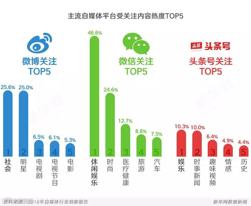 从微博、微信公众号到客户端运营号、直播平台,自媒体行业的发展愈发多元化。在平台方面,直播类平台近两年发展迅猛,受到用户的青睐;在内容方面,自媒体平台用户更关注娱乐、时事类的相关内容。