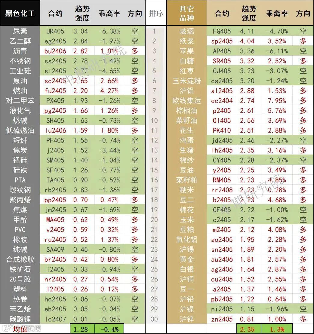 中期商品趋势榜 | 纸浆多头强势,玻璃、苹果、尿素空头强势(0322)
