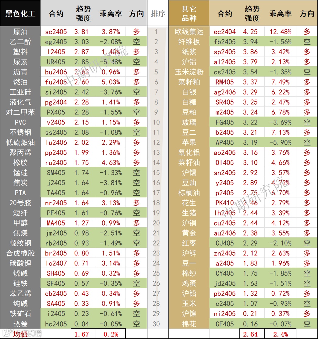中期商品趋势榜 | 欧线集运多头增强 (0321)