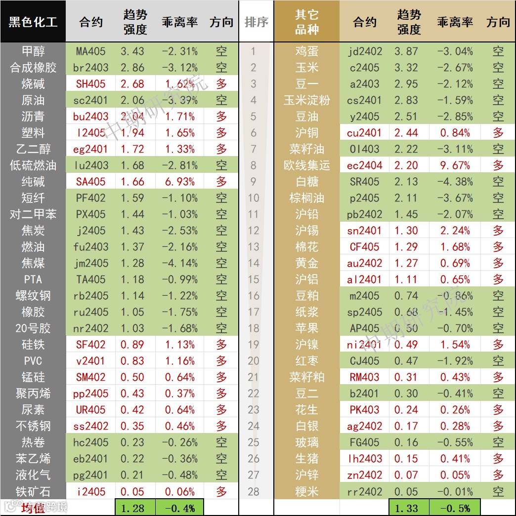 中期商品趋势榜 | 甲醇空头强势(1215)
