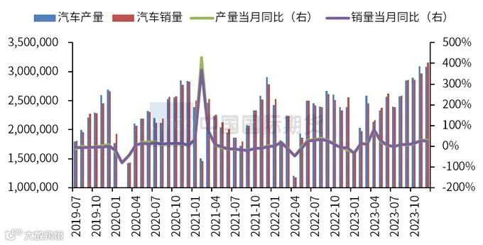 2024年国家促消费、稳增长政策仍将发力,宏观经济将保持向好态势,且在促进新能源汽车产业高质量发展的多项政策的推进下,市场活力将得到进一步的激发。中汽协预计2024年我国汽车总销量将超过3100万辆,同比增长3%以上。预计新能源汽车销量达到1150万辆,出口550万辆。