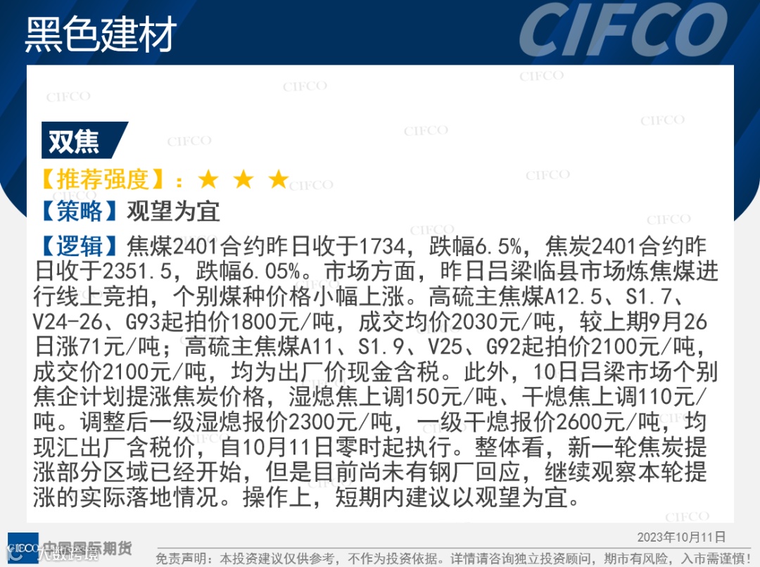 中期早知道 | 焦煤焦炭大跌  液化气持续下跌 中国国际期货福建分公司