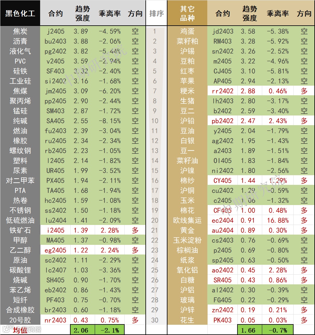 中期商品趋势榜 | 沥青、液化气空头增强(0109)