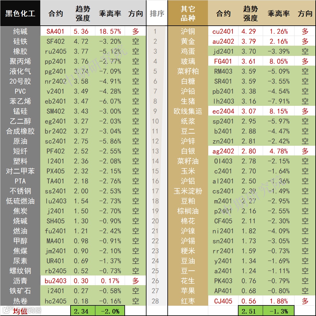 中期商品趋势榜 | 商品空头占优(1204) 中国国际期货福建分公司