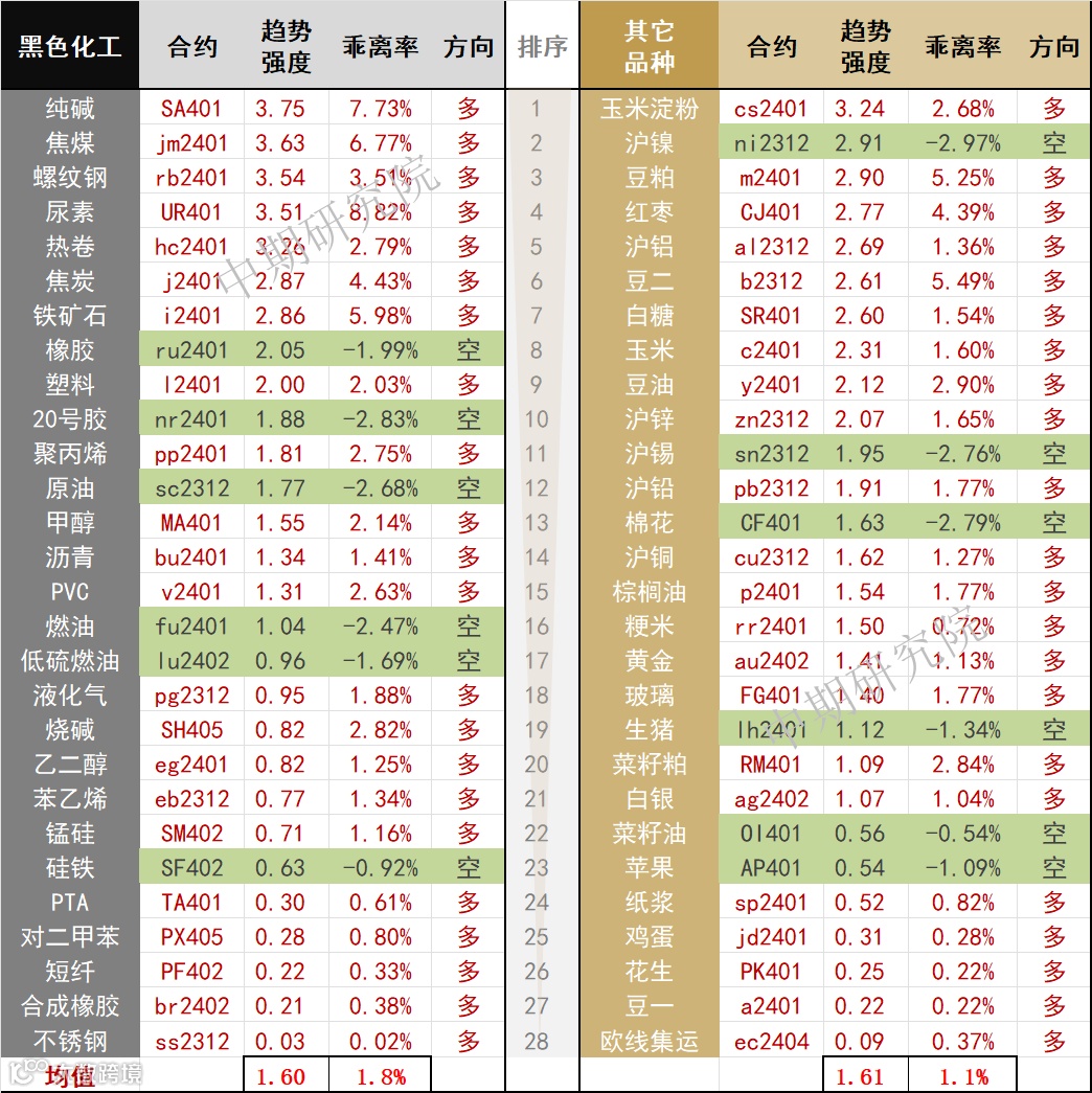 中期商品趋势榜 | 纯碱多头增强(1106)