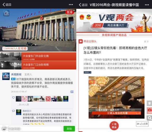 从晨曦微露,到夜幕降临,央视新闻《两会云直播》带你到人民大会堂感受会场外的全天候“两会时间”,看会议前后的人潮涌动,看大会堂的庄严肃穆,三路画面自由切换,自己做导播的感觉棒棒的。《两会云镜头》用延时作品压缩流动的时间,带你40秒看完人民大会堂内外五小时,30秒看完天安门广场的升旗,会场内外的宏大场面和细枝末节尽收眼底。