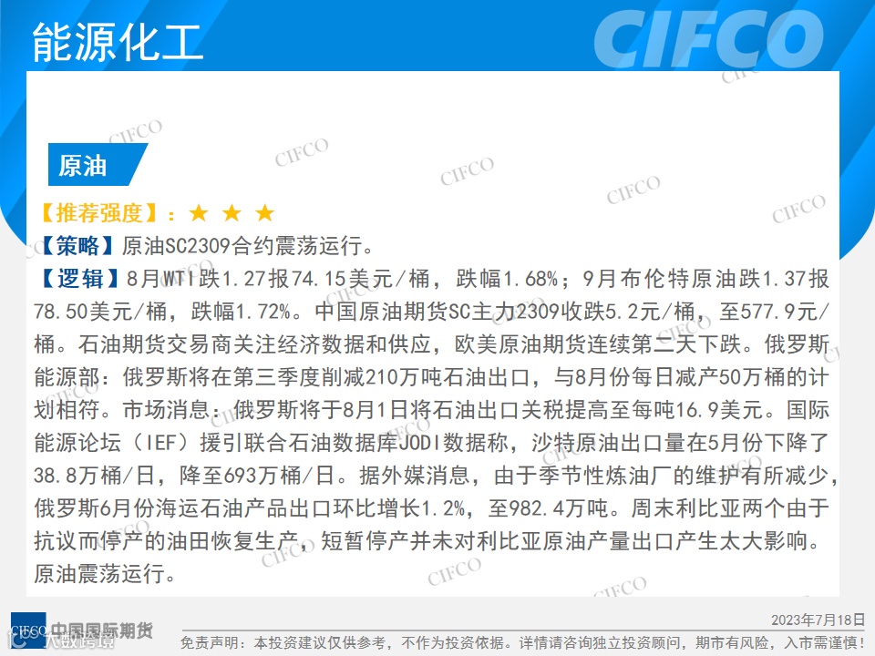 中期早知道 | 黄金震荡偏强  能化弱势下跌 中国国际期货福建分公司