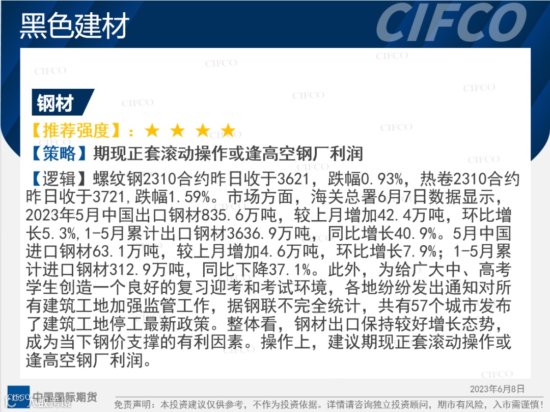 中期早知道 | 黑色震荡上涨  纸浆持续下跌 中国国际期货福建分公司