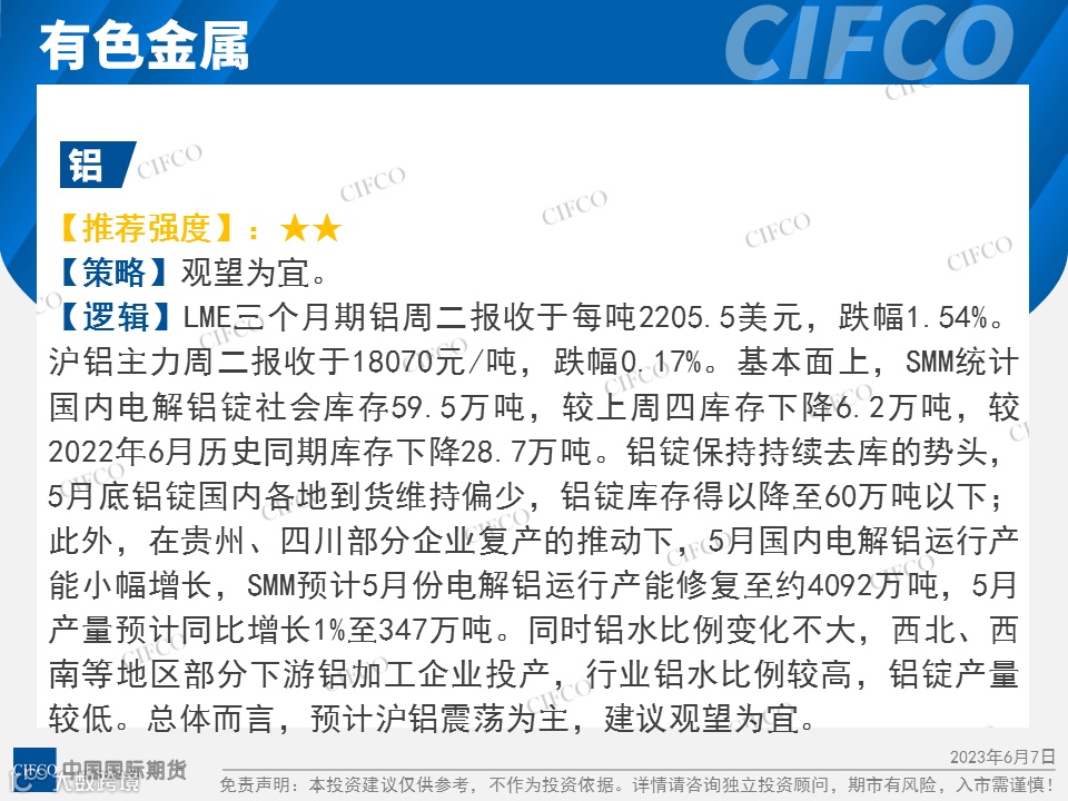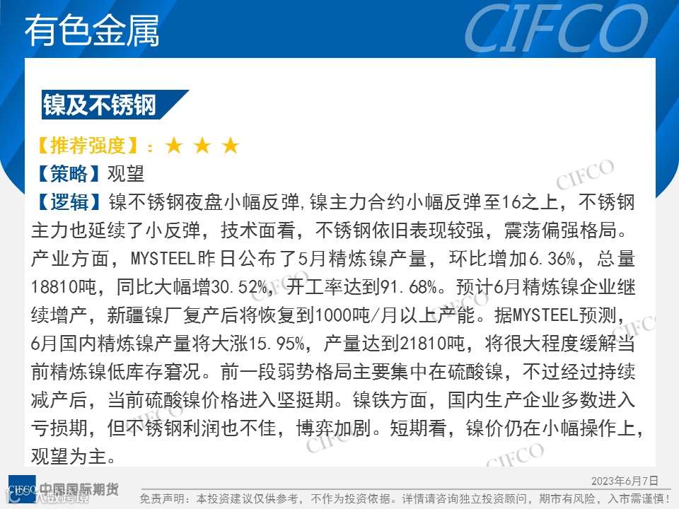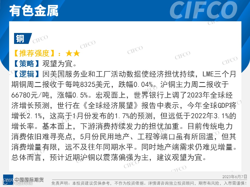 中期早知道 | 有色小幅上涨  期指窄幅震荡 中国国际期货福建分公司