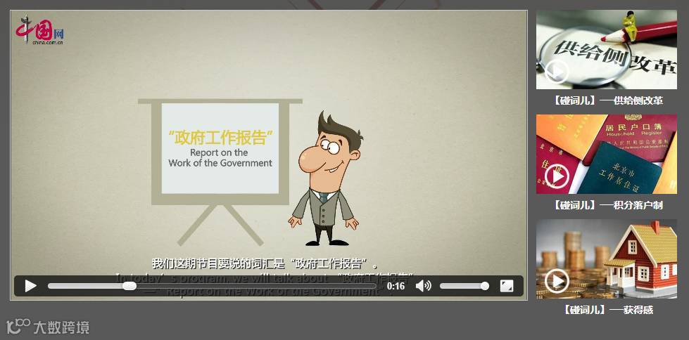 和其他视频产品不同,中国网视频将“政府工作报告”作为核心词汇,用双语解读政府工作报告如何产生、内容涵盖等相关信息,达到为特定受众,传递两会信息的目的。