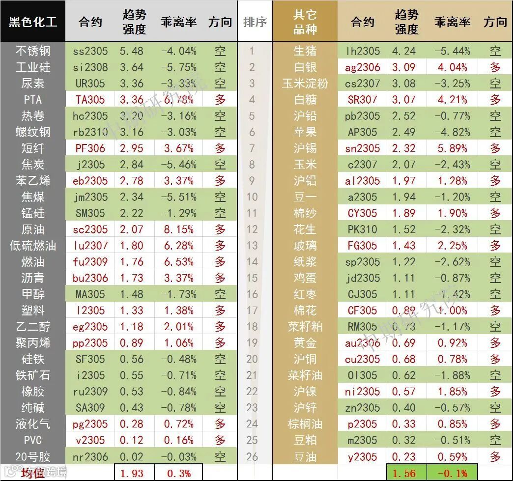 中期商品趋势榜 | 生猪空头持续强势(0403)
