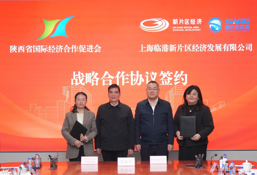 陕西省国际经济合作促进会副秘书长李颖,上海临港新片区经济发展有限公司“走出去”综合服务平台首席运营官高岚代表双方签署协议。