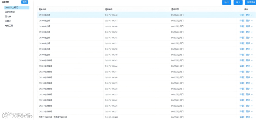 项目初始化完成后,项目会将形成的设备清册以及阀门等清单管理导入外滩设施自主研发并使用的POMS设施设备运维平台,形成信息化系统化的管理。