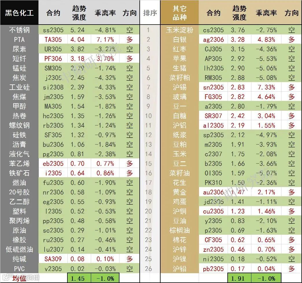 中期商品趋势榜 | 不锈钢空头持续强势(0330)