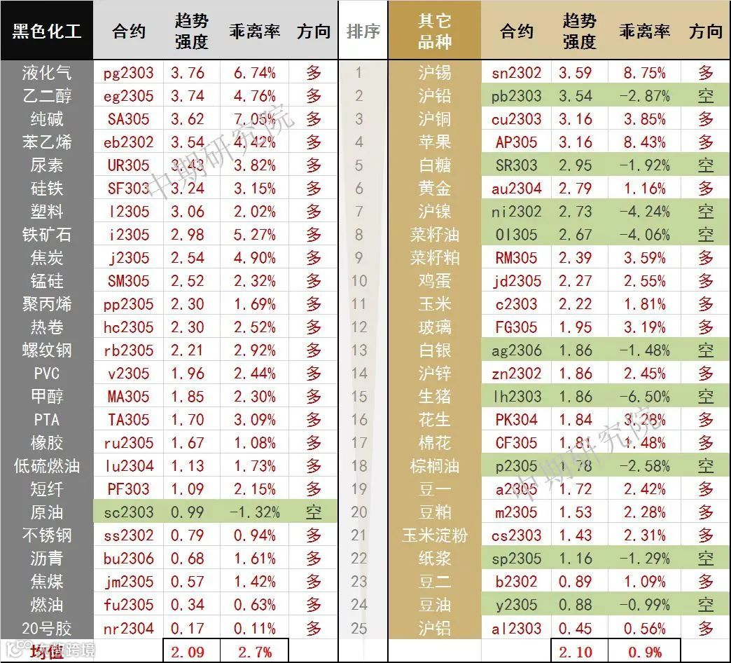 中期商品趋势榜 | 液化气多头动能增加 (0113)